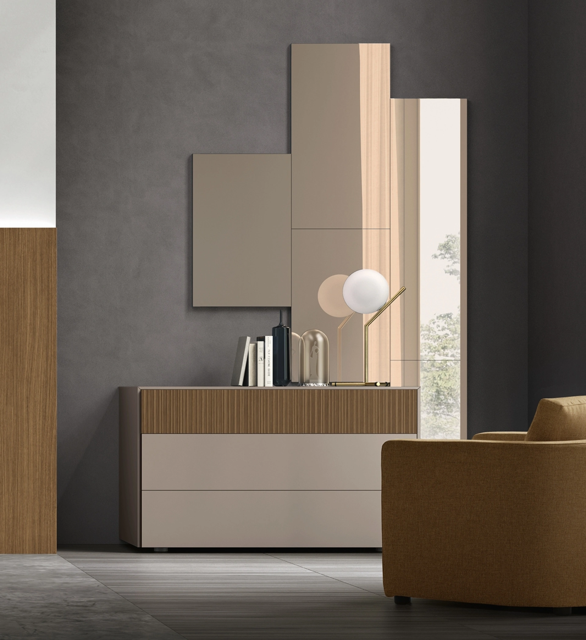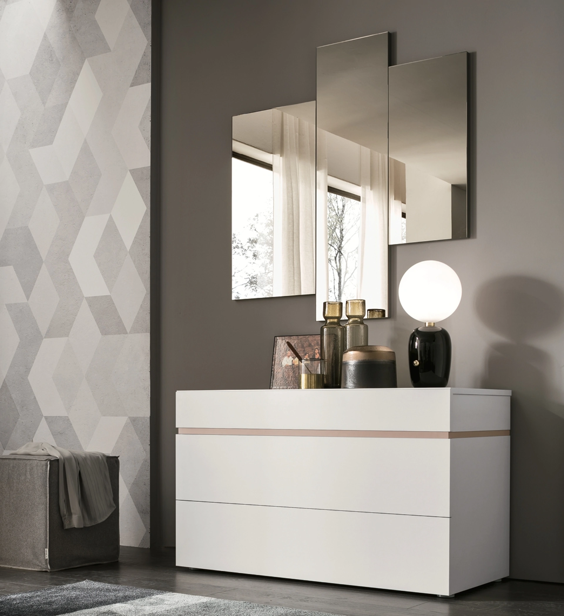 Complementi e specchi personalizzano l'arredo di casa, riempiendo lo spazio in maniera utile e rendendolo accogliente e bello a vedersi. Molto versatili e plurifunzionali, i Complementi moderni senza cornice svolgono funzioni disparate: completano le doti pratiche e l'estetica dell'ambiente. Le composizioni arredative di grande fascino del brand Maronese rendono belli gli interni con i loro colori e gusto, ricreando particolari atmosfere arredative. Nel nostro showroom potrai visionare in prima persona la qualità dei modelli di specchi moderni senza cornice dell'azienda, proprio come questa soluzione in foto.