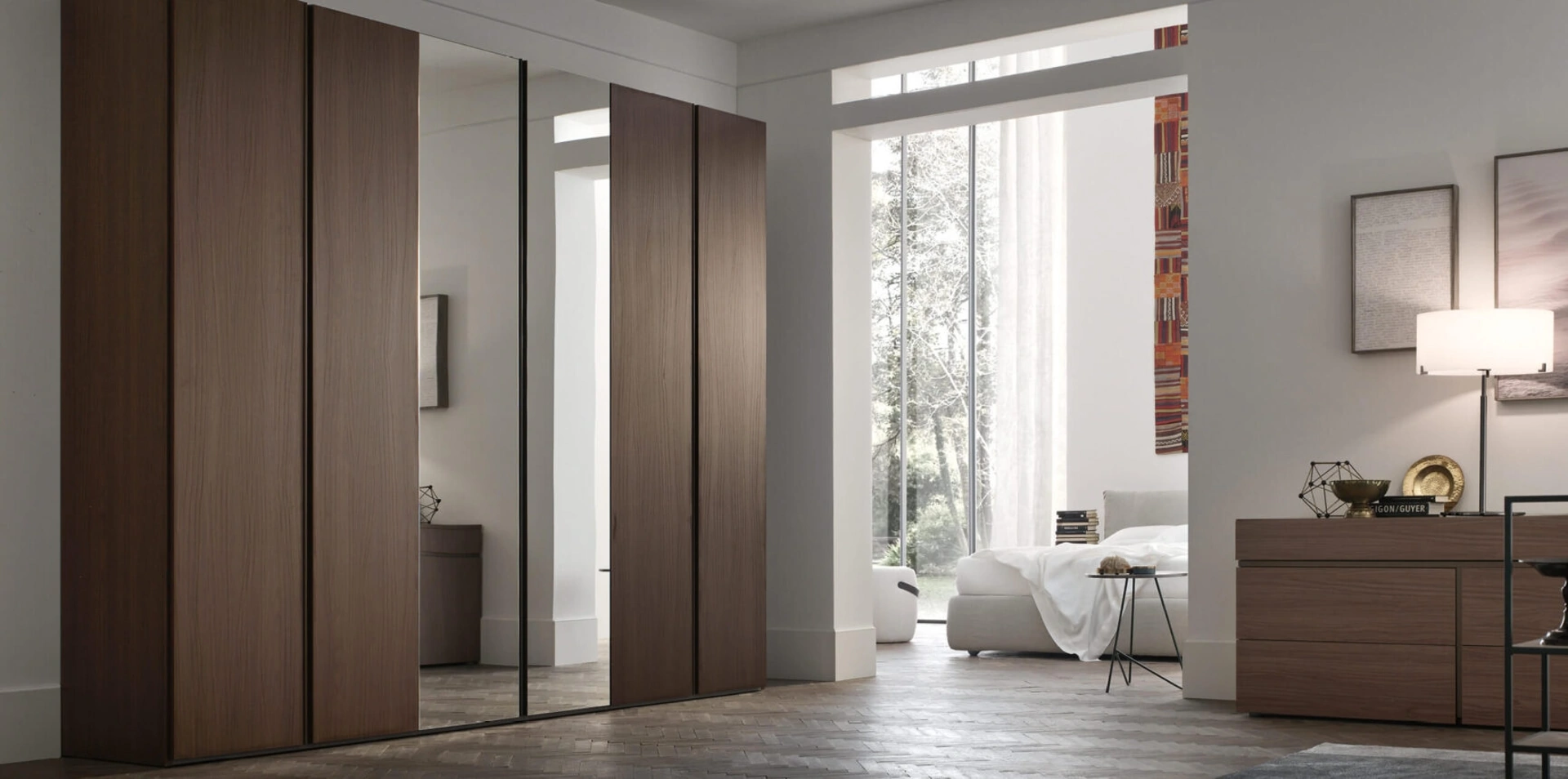 Gli Armadi a muro con ante battenti sono componenti essenziali nella camera da letto, per renderla ammobiliata al meglio, funzionale e completa di tutto. Contattaci e scopri di più sulla nostra linea di Arredamento Casa: sarai in grado di completare la zona del riposo utilizzando una diversificata disponibilità di mobili contenitori moderni, come l'armadio in melaminico in foto. Per allestire perfettamente una stanza pratica e sofisticata, opta per le più belle soluzioni dei migliori brand, letti, armadi e comodini di grande design.