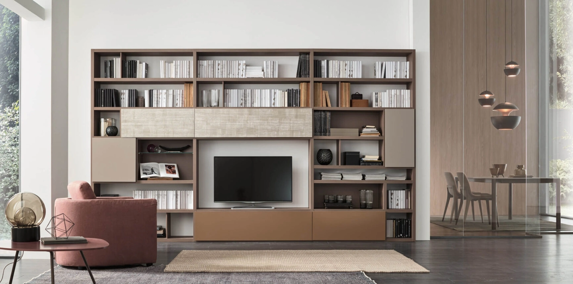 Anche in un soggiorno abbastanza piccolo, questo tipo di arredo riesce a organizzare al meglio gli spazi sfruttando bene ogni angolo e garantendo grandi doti di componibilità tipica delle soluzioni moderne. Se cerchi mobili salvaspazio e realizzabili su misura per te, contattaci e scopri di più sull'Arredamento Casa dei migliori produttori. La Parete Attrezzata Sistema Spalla Comp SA2210 di Maronese nell'immagine, con finitura in laccato opaco, risolve le più particolari problematiche abitative di stile e spazio senza rinunciare alla ricerca estetica. Questa proposta rappresenta tutta l'eccellenza che il marchio garantisce grazie a pluriennale professionalità e grande dedizione nel campo dell'arredo e del design.